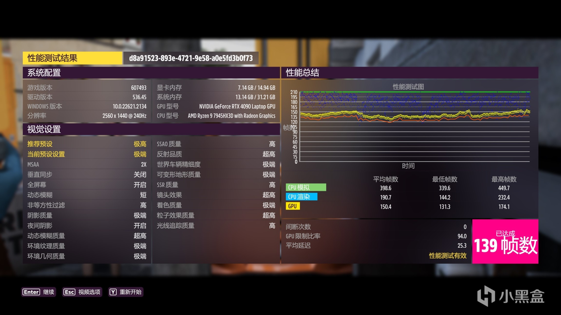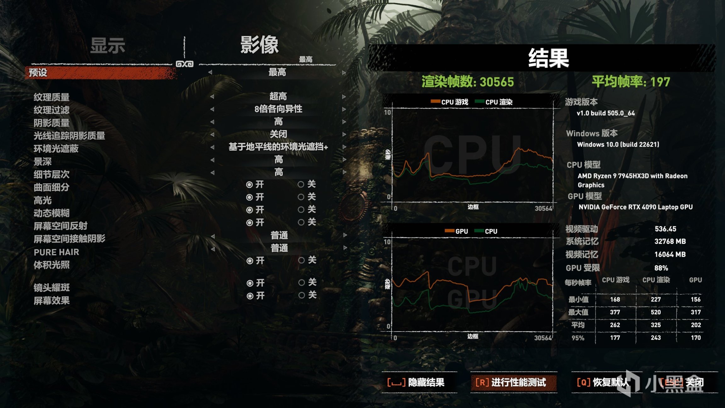 原子之心选择“原子”画质预设,就有200帧。同样是4090,相比之前7945HX的170帧有很大程度提升。