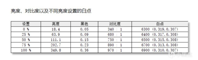 最大亮度为349尼特,最低亮度为18.4尼特。最高亮度是够用了的,最低亮度还差点意思