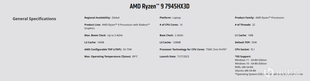 AMD这次把3D V-Cache技术加入了移动端是好事,让CPU更强,更好跟上4080和4090的步伐。这颗新的R9 7945HX3D在AMD官网也已经更新了,