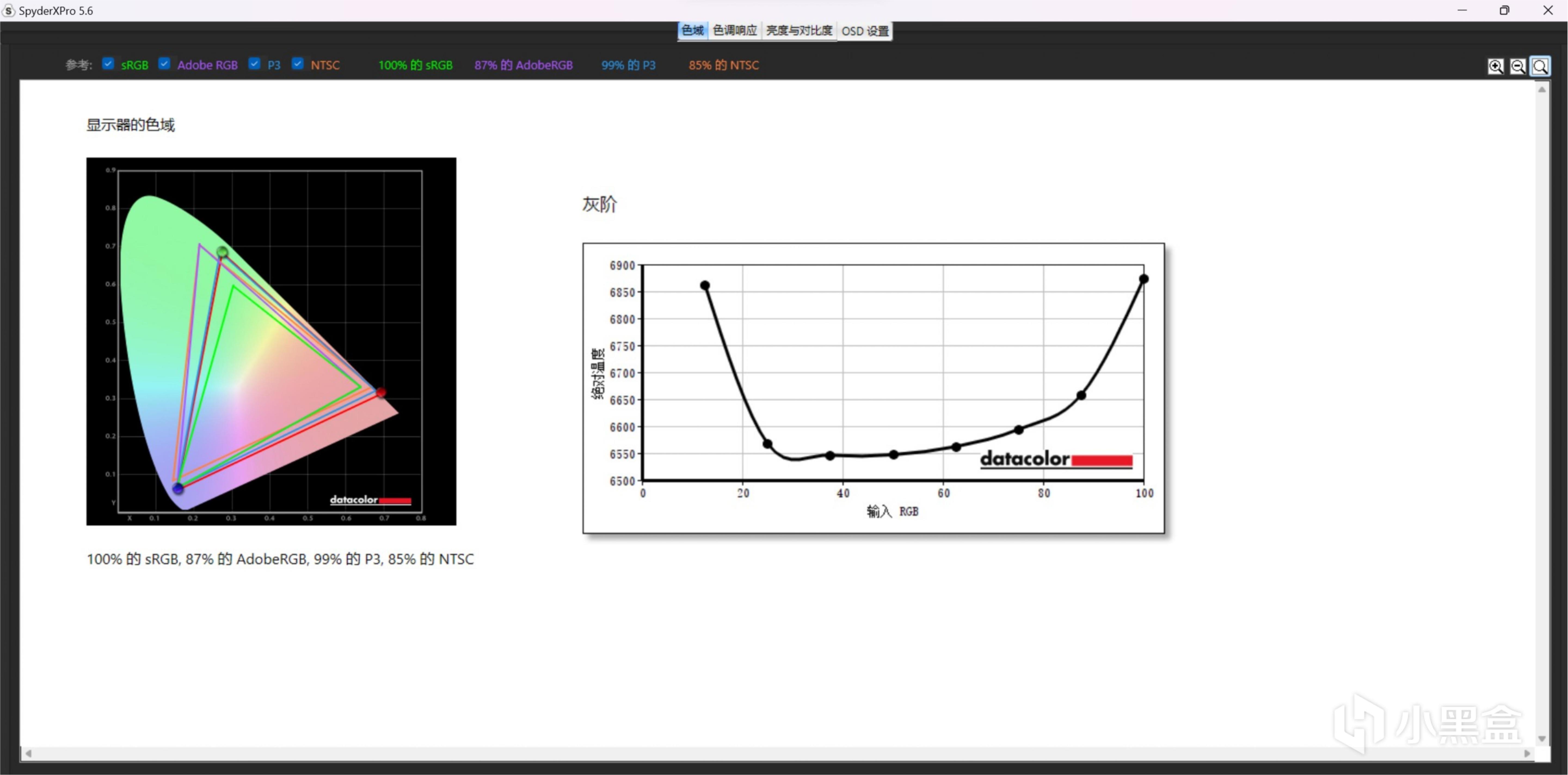 屏幕色域容积为87%AdobeRGB,99%DCI-P3,85%NTSC