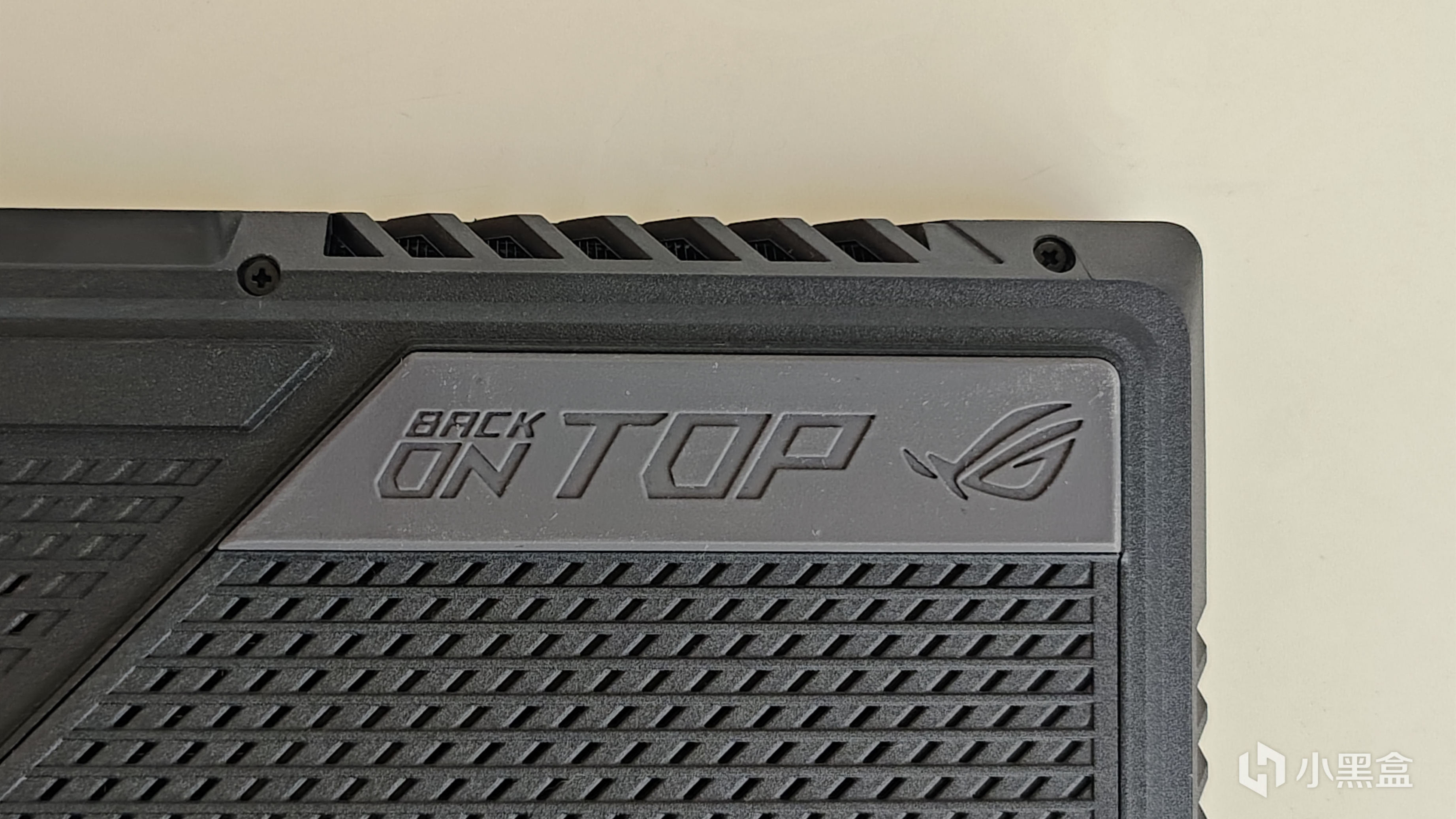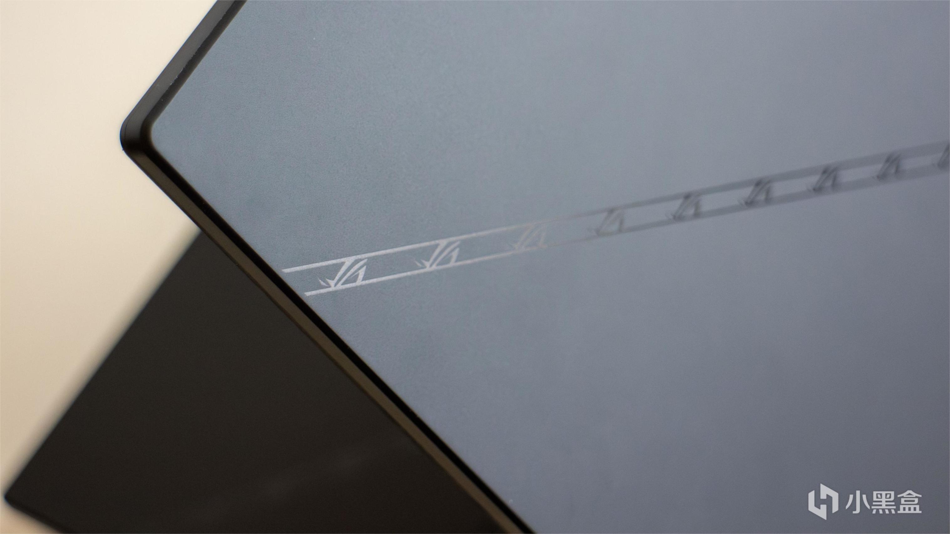 A面还是之前魔霸7Plus的设计,一个斜切的条纹,再加上ROG自己的LOGO。