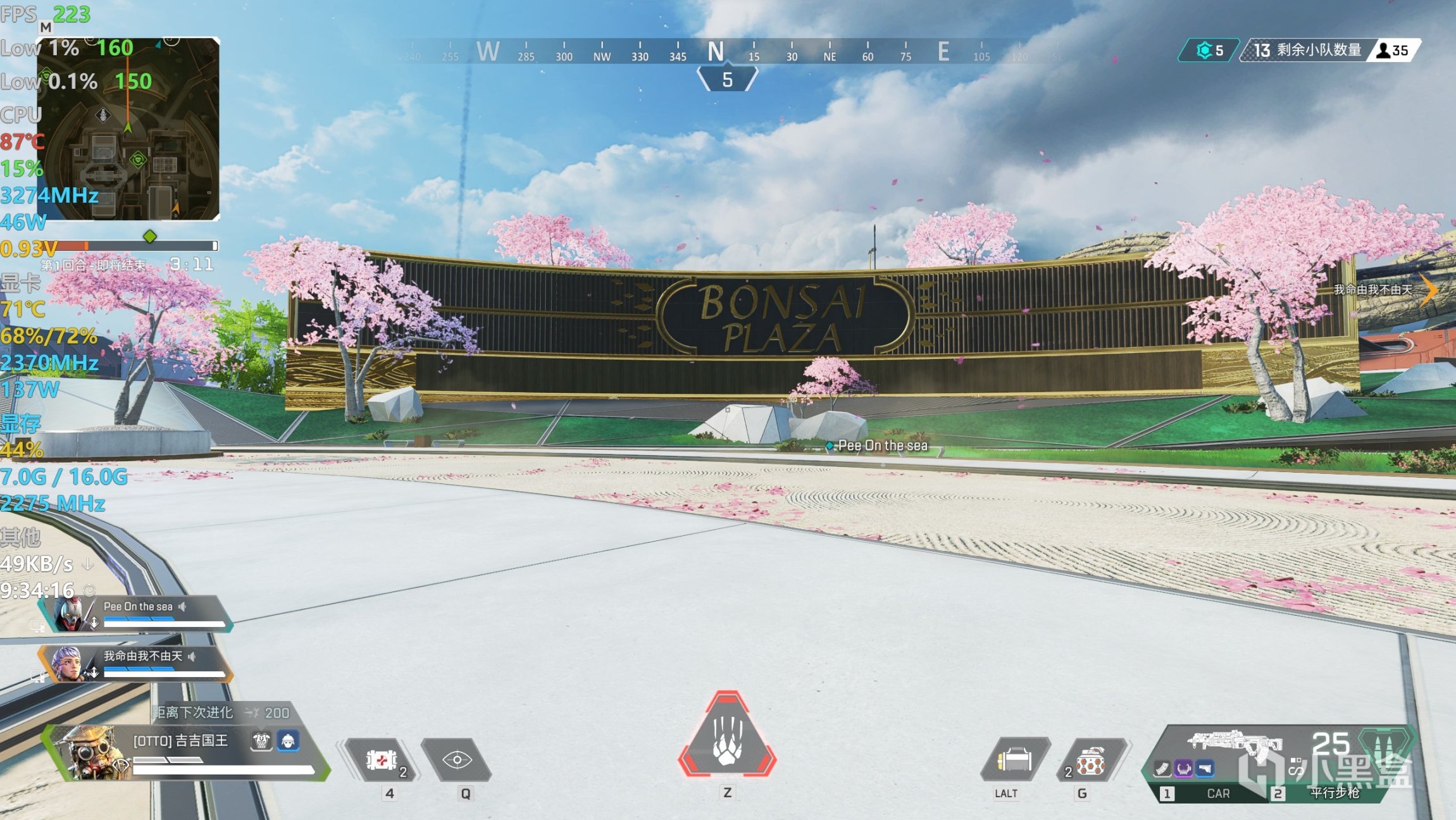 Apex的帧数就稳定多了,基本都在210帧以上,这个表现对于经常对枪抽人的队伍来说很棒(比如我这种)