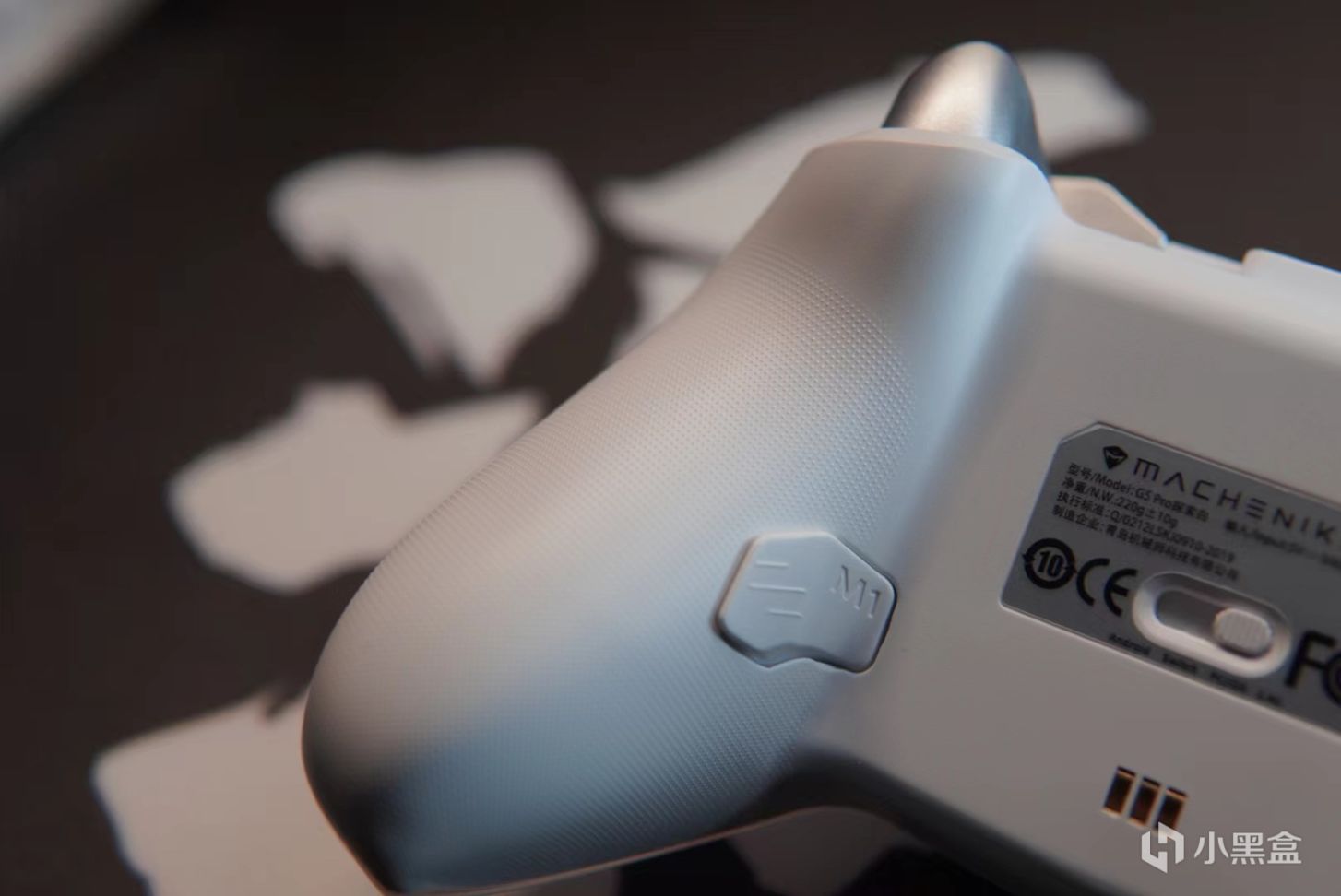 手柄的背面也增加了按鍵的設計,採用了機械的鍋仔片,貼合是比較緊的,觸發較快,而且能在一定程度上面防止誤觸的存在。這個按鍵同時支持兩個宏編程按鍵。