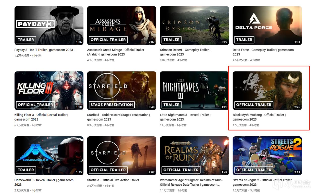 最后,这次PV的宣传效果到底好不好,是有数据可证的,根据目前油管上IGN所发的所有科隆新PV播放数据来看,《黑神话悟空》目前排在第一(17万播放),远高于《星空》(8万播放)《刺客信条》(4万播放)等大作。