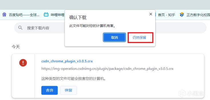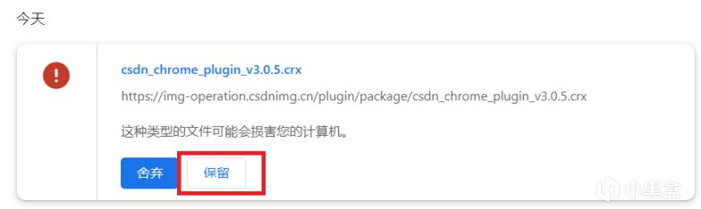 https://t.csdnimg.cn/Mruj点击立即下载,在弹出来的提示框里点保留(因为不是谷歌官方插件商店,所以警告,大家放心)