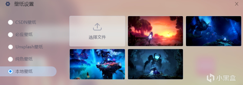 在插件内集合了四个平台的壁纸,有风景有纯色,也可以自定义,比如换成游戏截图图