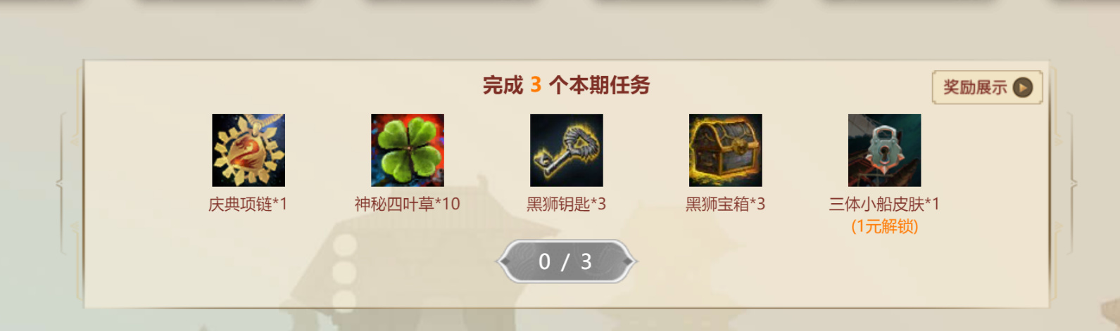 完成以上6个任务中的三个任务即可解锁以下奖励内容