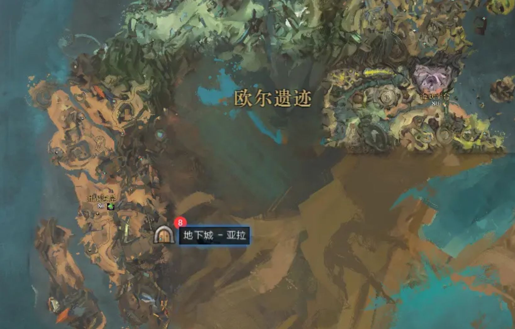 但怪物为80级,建议满级装备及职业技能齐全后前往,可通过如图狮子拱门地图位置进入。