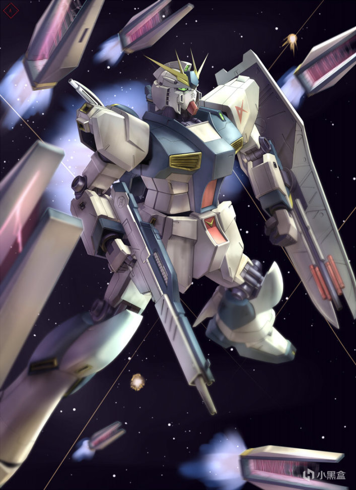 ν高达,阿姆罗最后一战的机体,在机体背后的是浮游炮
