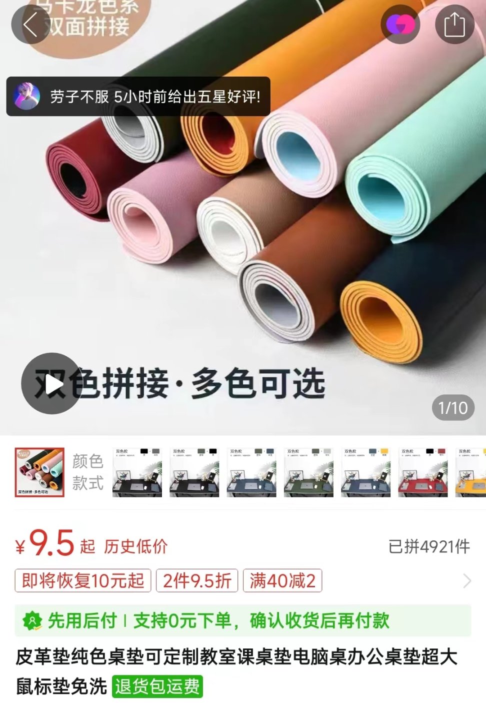 为了解决桌面颜色和硬度问题,我买的第一个东西就是这种皮革的全尺寸桌垫,150*70这个尺寸定制下来是50块左右。