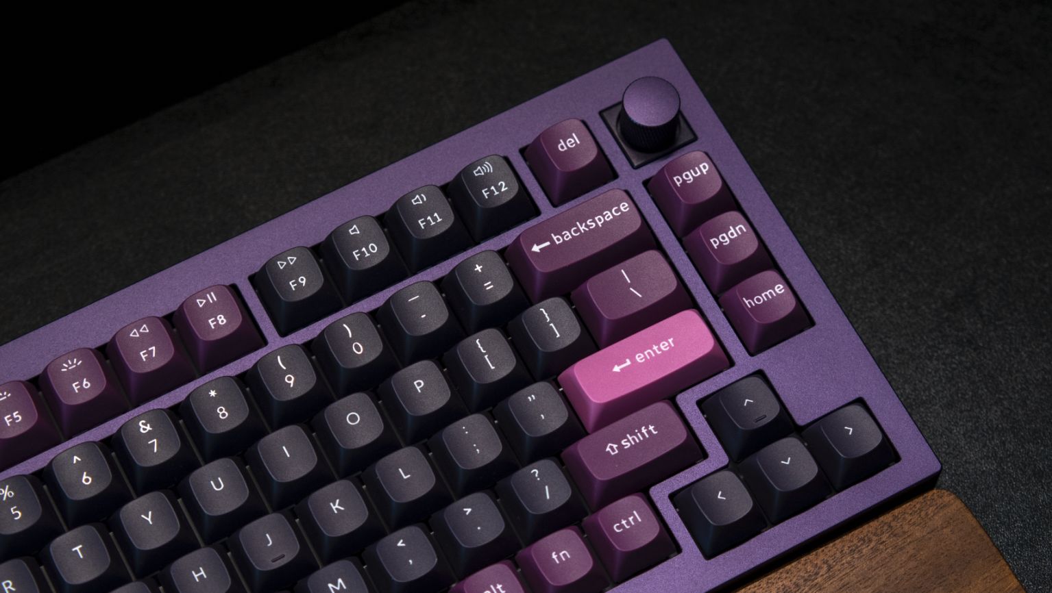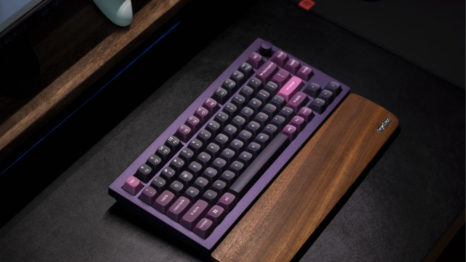 键盘是keychron Q1 Pro 紫色,75%配色+旋钮,GAS结构,三层消音、全金属CNC的铝坨坨。这个键盘的紫色真的好毒,特别配我这次的桌面氛围。