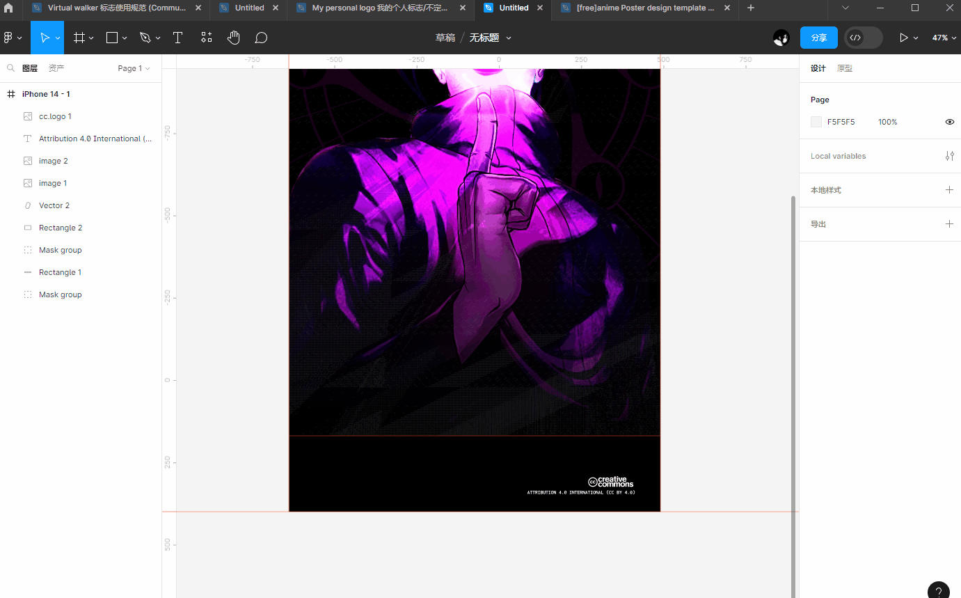 我入手Figma之後就開始設計動漫海報,也曾用這些二創作品被MasterGo等等設計平臺邀請入駐。所以我想在小黑盒這裏,分享我用Figma進行平面設計的技巧與想法,幫助大家進階設計。