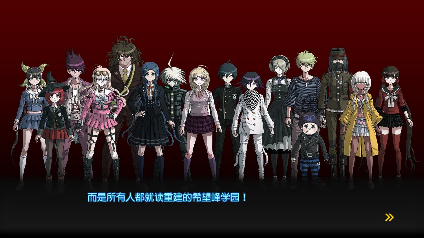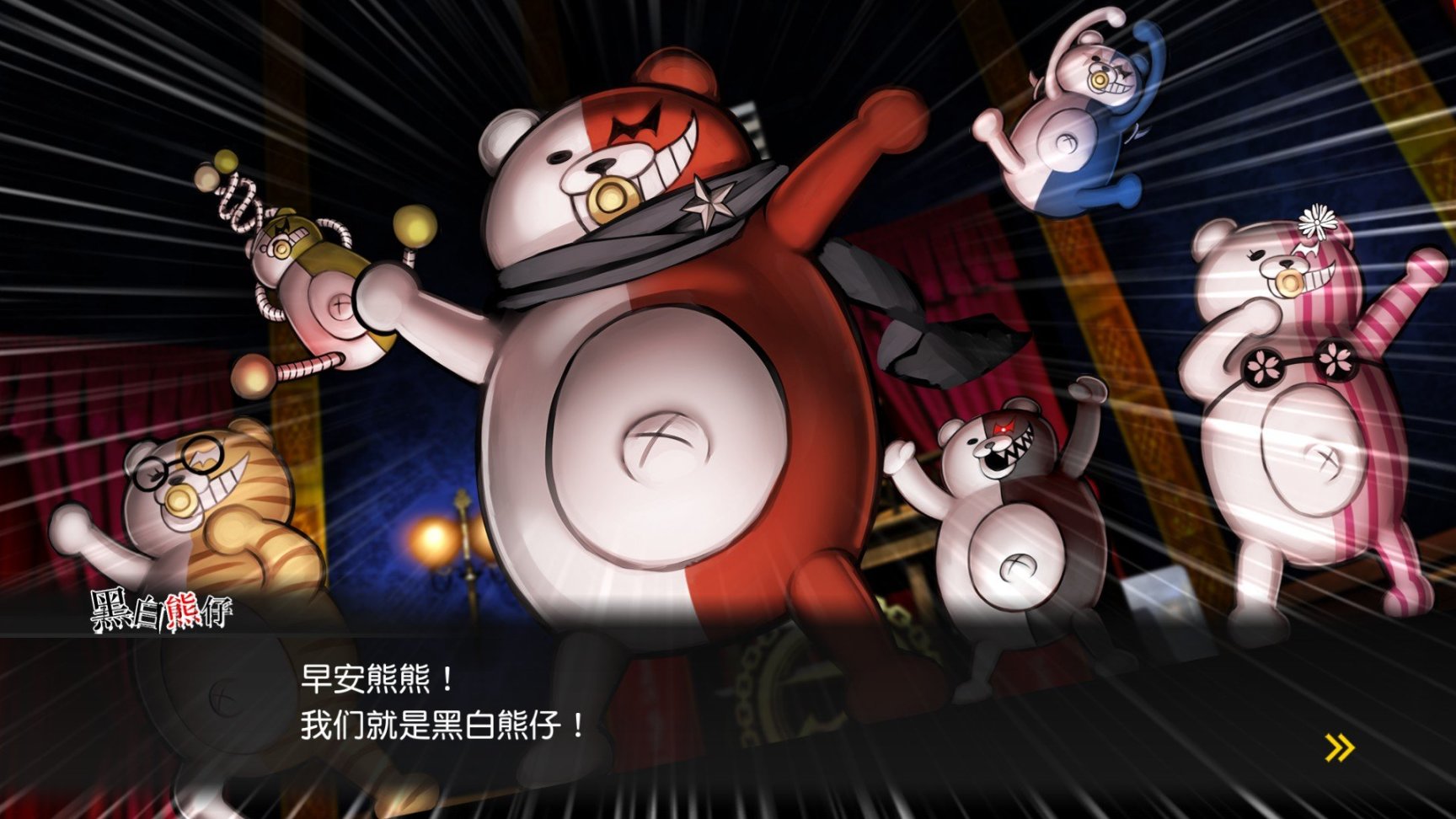 弹丸论破系列的记忆负担是比较重的,因为在一开场就需要对16名角色大致有个印象,不像其他大部分文字AVG有循序渐进的过程。然而黑白熊仔的一齐出场,不仅打破了原有的黑白熊惯例,还让我觉得聒噪无比。这个印象一直持续到第三章才有所改善。