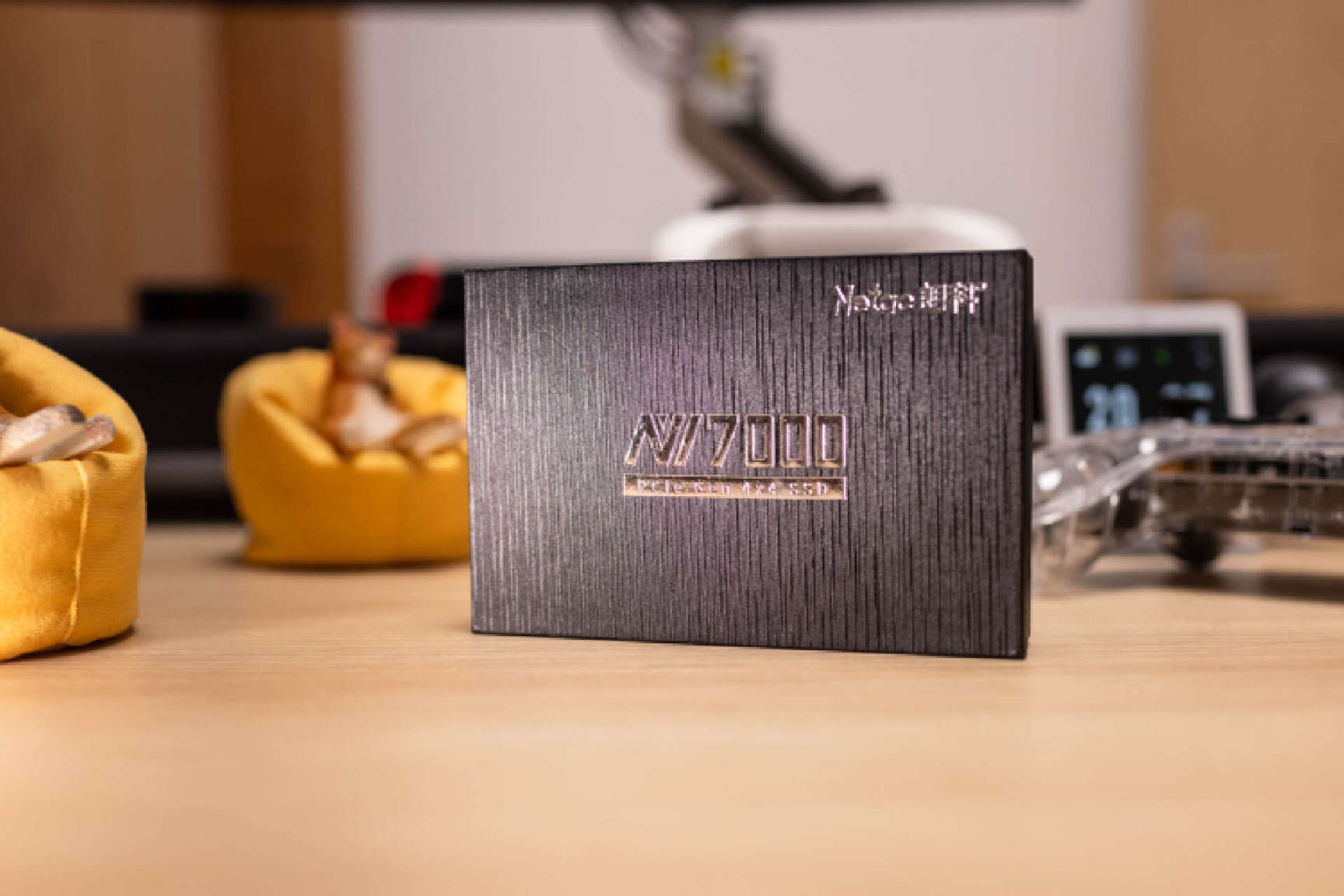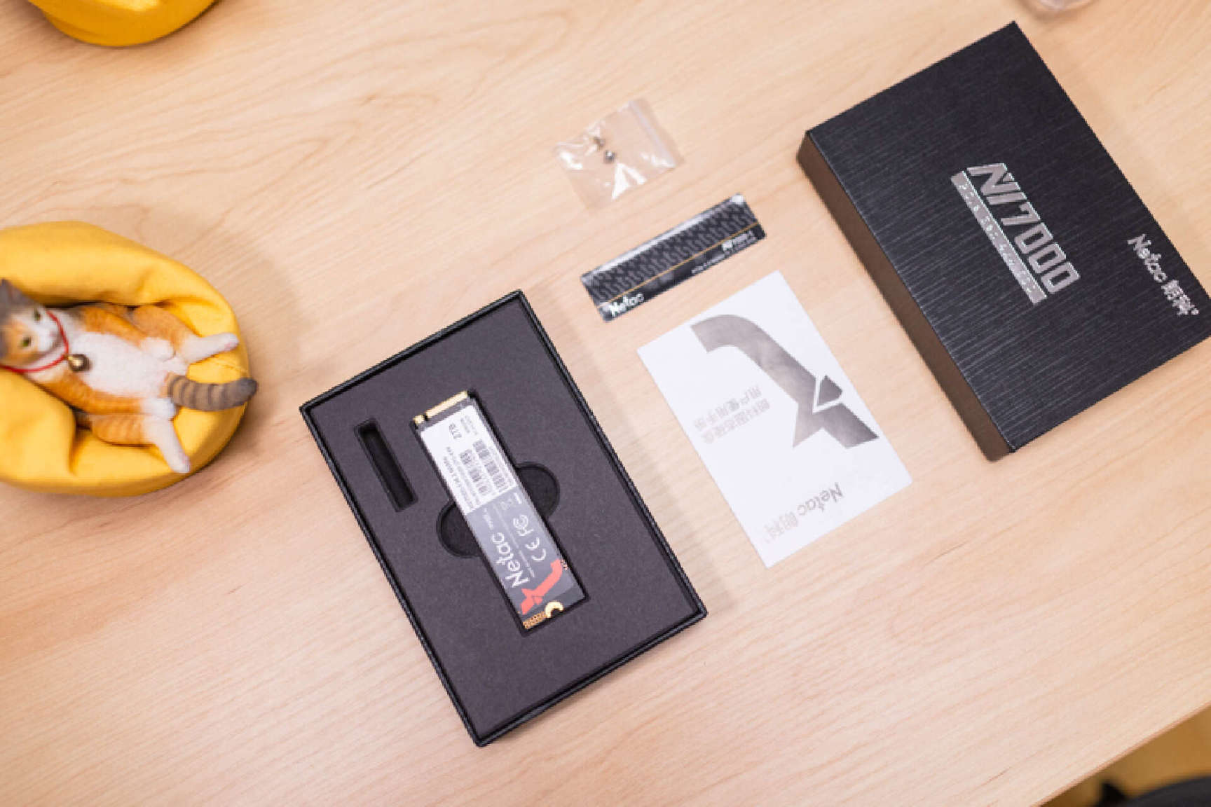 打開包裝,可以看到包裝盒內部還提供了額外的收納框架,所有配件都被收納的整整齊齊。配件方面,除了NV7000-t 2TB的硬盤主體外,還提供了額外的散熱片,主板固定螺絲和說明書等。