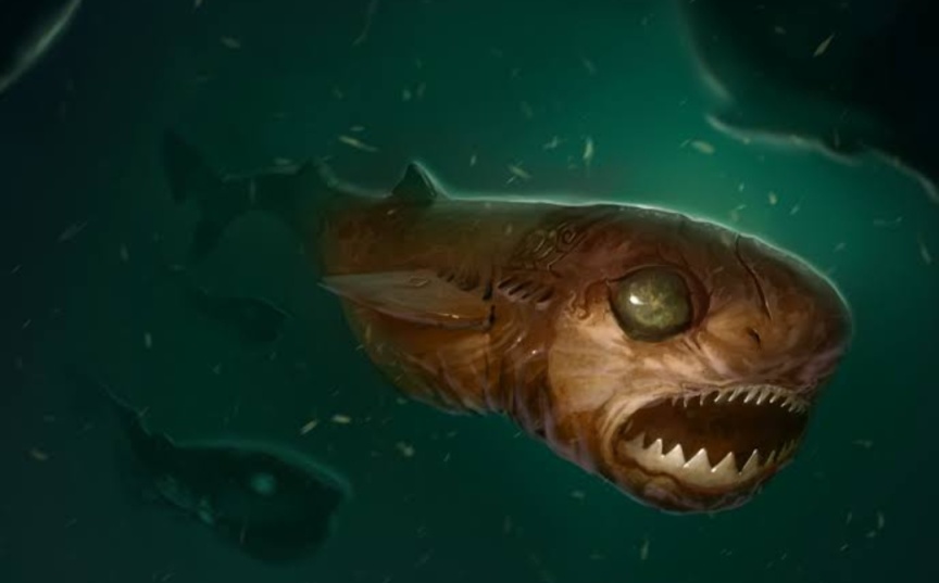 首先,它们会借由腹部的发光器引诱猎物,待对方上钩后,会先用下颚那锯齿般的牙齿咬住吸附在猎物上,上下牙同时发力切入,并不断扭动身体,全身360°旋转,这样一块肉就被轻轻松松切割下来了。