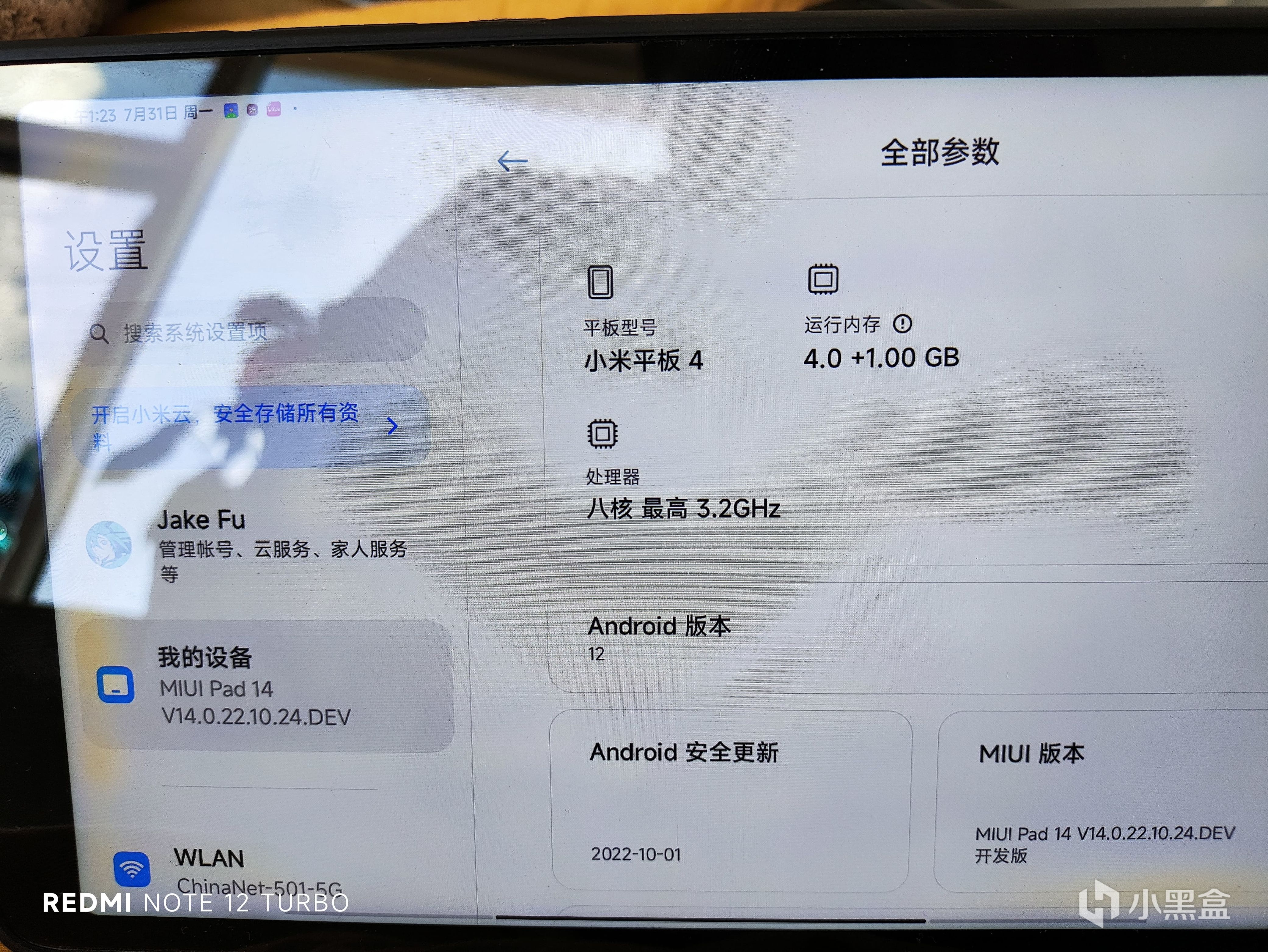 反光非常严重,而且看起来也有颗粒感。具体硬件参数在后边会说明。