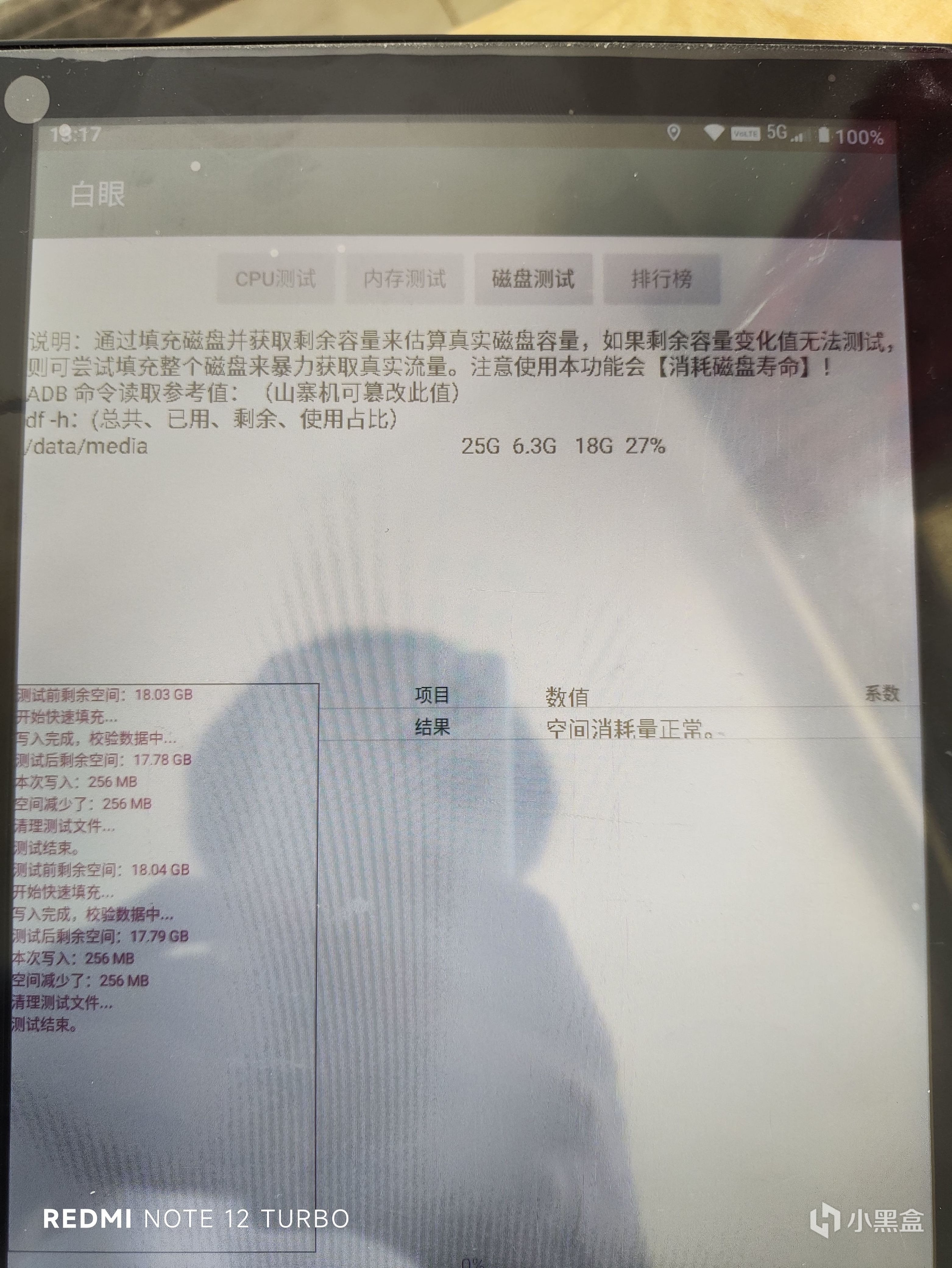通过白眼的暴力填充,测得真实内存2GB,硬盘容量是32GB。