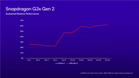 不止看極限性能,這類設備還要看持續性能釋放,驍龍G3x Gen2在跑30輪測試之後性能依然可以穩定在60%左右,比第一代強多了。