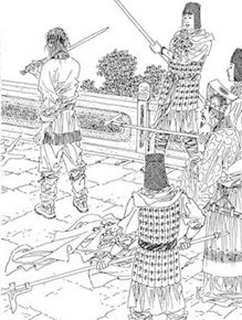 當然,身爲一國之君的王僚也不是傻瓜,他派出了數量可觀的衛隊,據說能從王宮一直排到公子光家中。此外,他的親信和持矛侍衛也分佈在公子光宅邸的門戶和臺階左右,不可不謂戒備森嚴。然而,公子光和專諸畢竟技高一籌。公子光詐稱腳疾,在酒酣時跑路了,讓專諸把匕首藏入魚腹中,接近並刺殺了王僚。王僚的侍從當場殺死了專諸,但是羣龍無首的他們很快也陷入了混亂。公子光便出其不意率領披甲武士消滅了王僚的支持者,進位爲吳王闔閭,並且封專諸之子爲上卿。