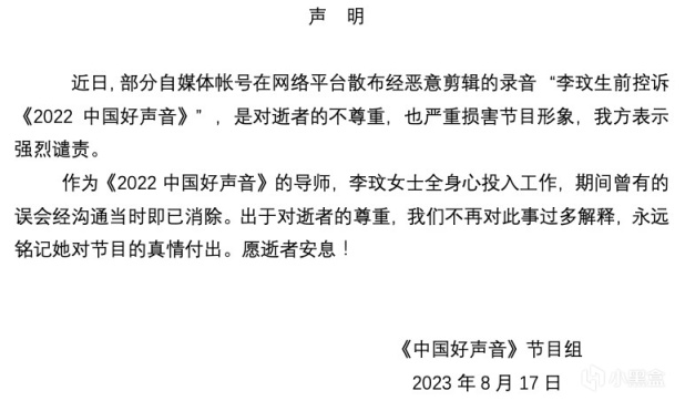 面对观众们的质疑,好声音节目组并没有选择道歉直面问题,而是发布声明说这段声音为恶意剪辑。