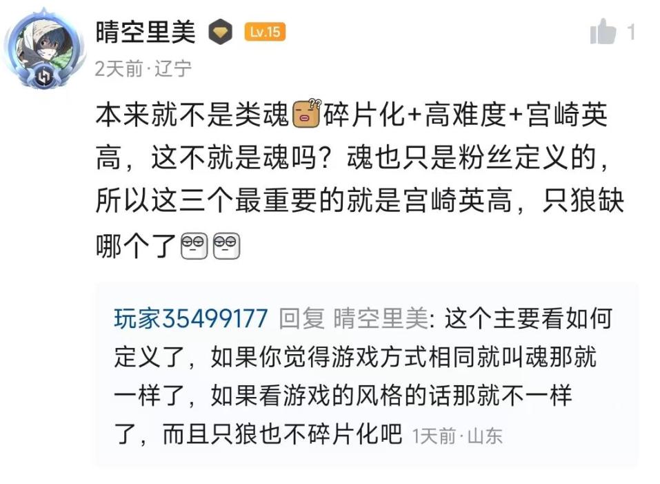 2:游戏是不是一款类魂游戏并不影响它能不能成为一款优秀的游戏,和品质无关只是方便区分。