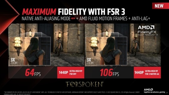 两个月后,RX 7900系列发布之际,AMD宣布了新一代游戏超分技术FSR 3,对标意味十分明显,并承诺2023年上半年正式推出。