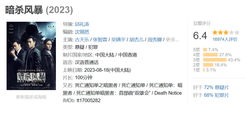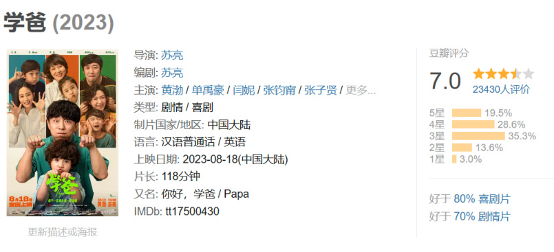 以下是本次8月票房榜单的豆瓣评分和影片简介(信息来源豆瓣):
