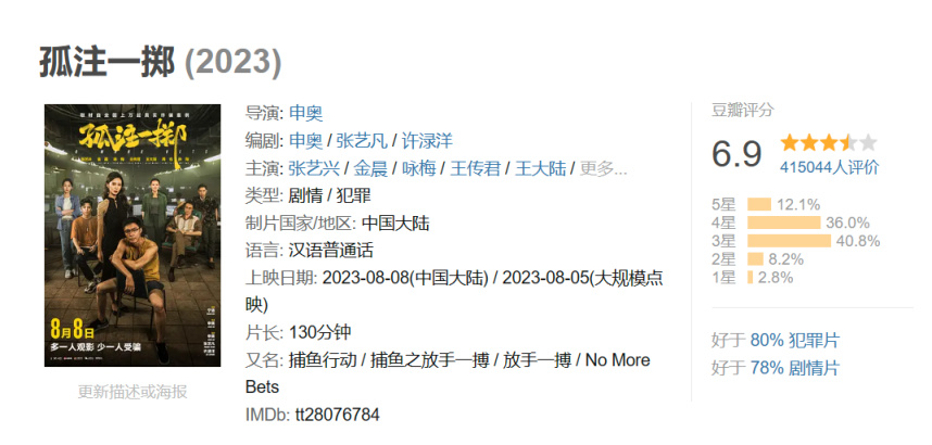 《孤注一掷》以超32亿的票房远超第二名《封神:第一部》稳坐8月票房第一的王座!而《孤注一掷》取得这样的票房成绩也是意料之外,情理之中的