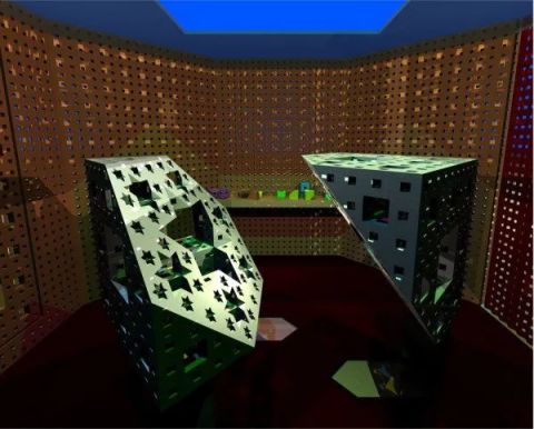 4、把每一个留下的小正方体都重复第1-3个步骤。把以上的步骤重复无穷多次以后,得到的图形就是门格海绵。