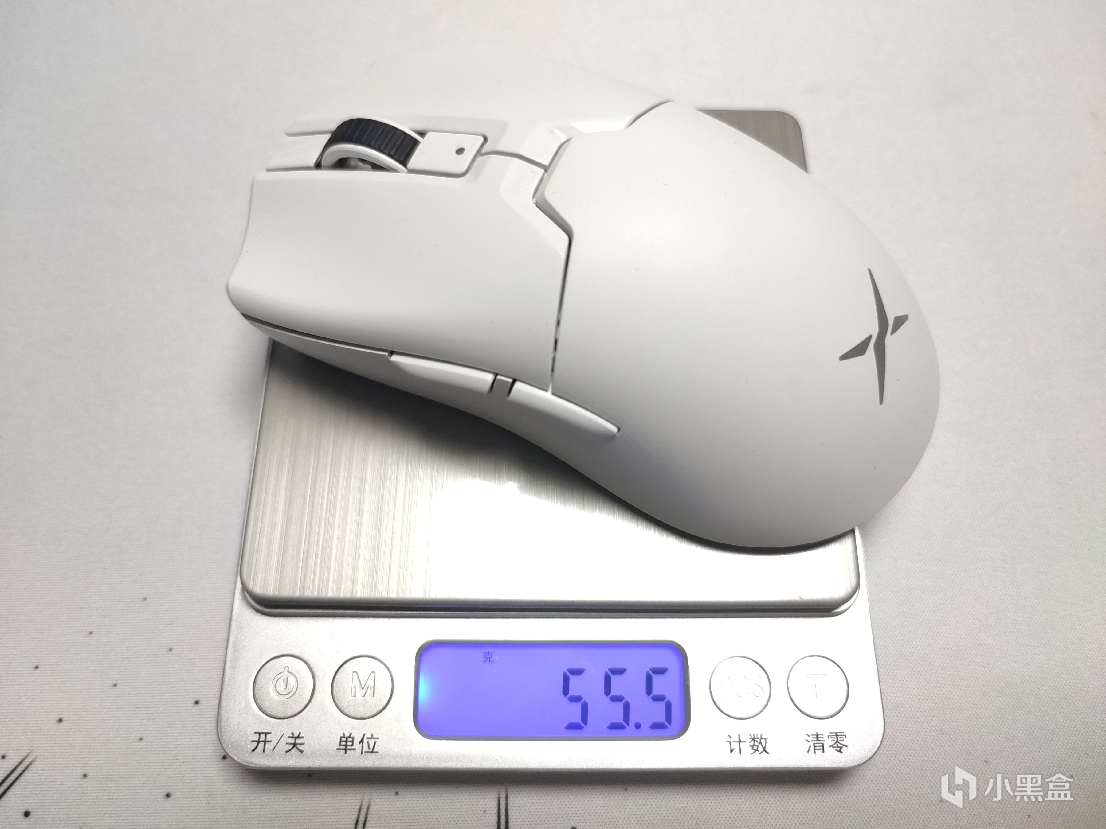 我手上这一款鼠标就是白色 600mah电池版本,实际测量重量为:55.5g,黑色版本相较于白色因为用料不同,所以实际重量上会轻一些,大概会轻2g左右,这一点并不是多彩独有,其他部分厂商也有类似的操作。
