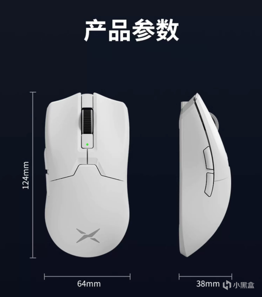 鼠标尺寸为124*38*64mm,说是适合中小手使用,不过我大手使用起来也是可以用的,模具很万金油。不过趴握会显得手心有点空,手小一点趴握会很舒服。鼠标最高点比较靠前,可能会感觉到有一点顶手心。