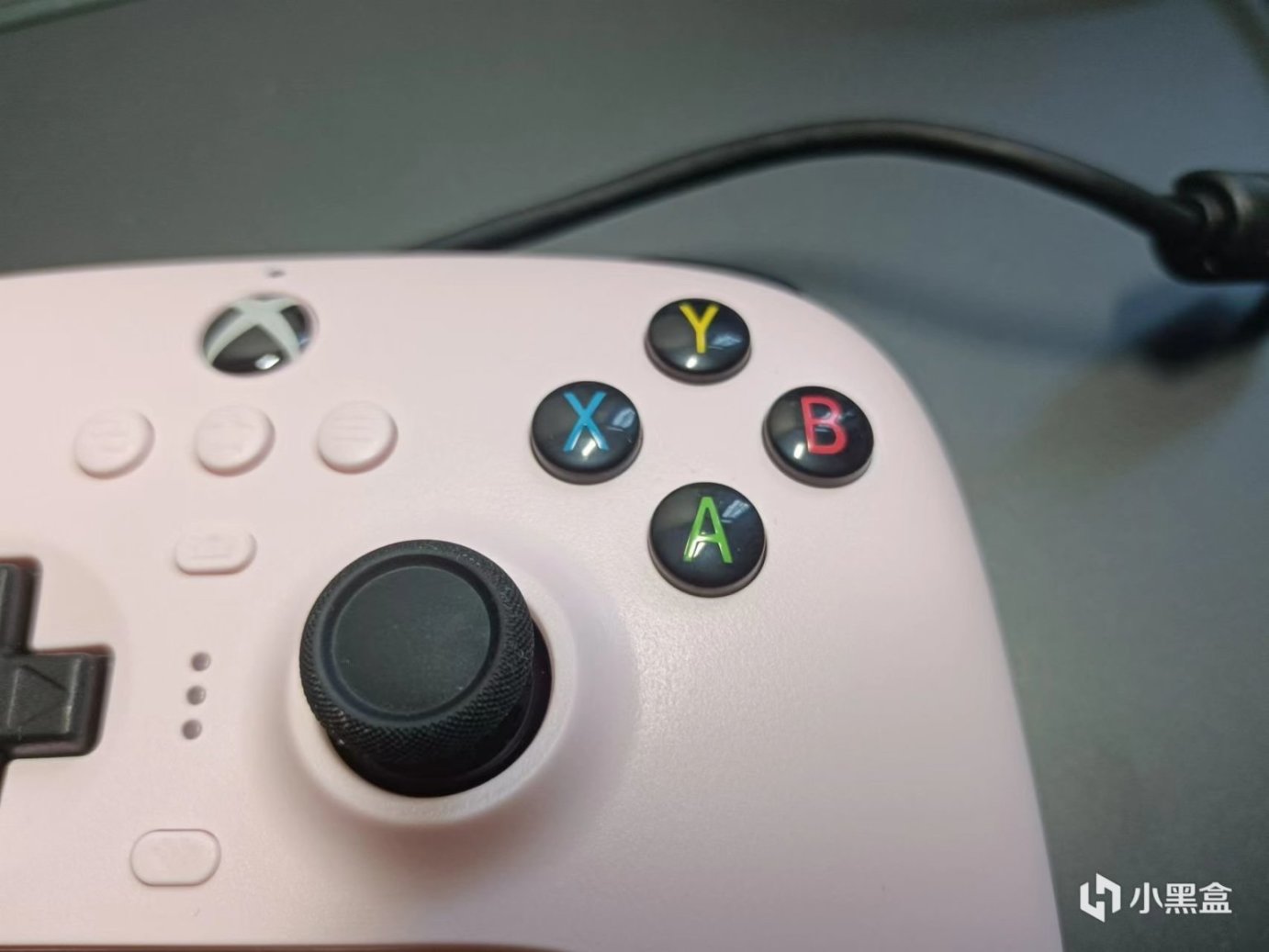 来到北通宙斯这次最具特色也是最具争议的一个地方——机械式微动按键。宙斯手柄正面的XABY按键与背后的两个背键一样,都是采用了机械式按键取代了以往我们手柄熟悉的导电胶手柄按键。大家可能不清楚机械微动按键的手感是啥样的,其实通俗易懂的就是大家平时按下去的鼠标左键。我个人而言还是有点小失望的,曾经以为是机械键盘的清脆爽快手感结果变成了按压签字笔般的手感。我个人是对这种机械微动按键不太感冒的,毕竟这种按键按下去手感一言难尽,而且按键回弹速度过于快让我一开始很不习惯。