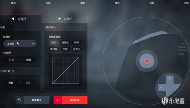 这款手柄的遥杆表现在同价位里描感算法做的十分不错。相比于其他百来块的手柄, 机械师的摇杆设置是有中心点死区的,但在APP中设置无死区模式后,手柄中心点无死区十分顺滑,不会有像其他同价位国产手柄方向吸附的现象。
