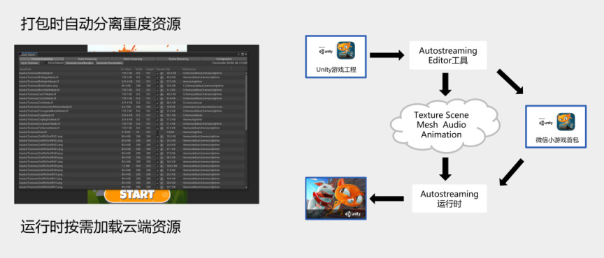 除此之外,團結引擎還支持微信小遊戲的UOS(一站式遊戲雲服務解決方案,Unity Online Services)、按需加載資源(Auto Streaming)等服務,實現資源壓縮、隨用隨加載等,幫助產品更好地參與短期市場競爭(畫面、體驗更好),長線內容產出(內容更新更持久)。