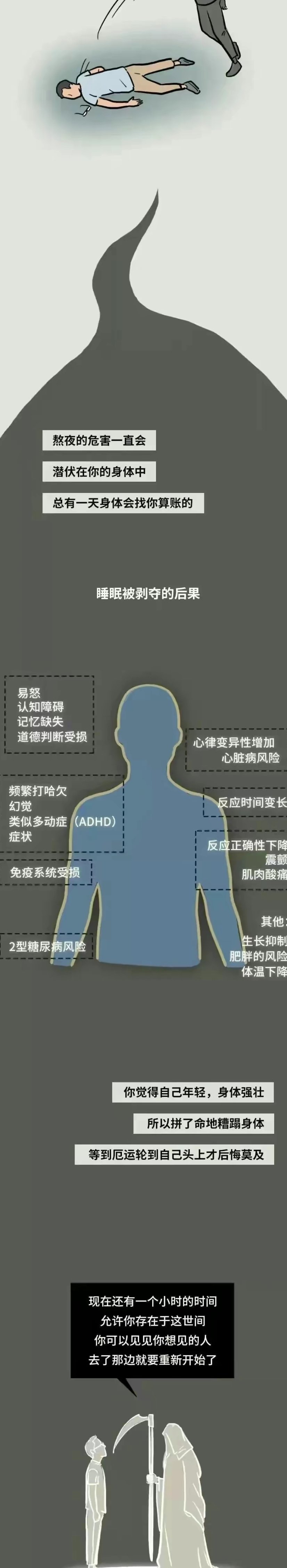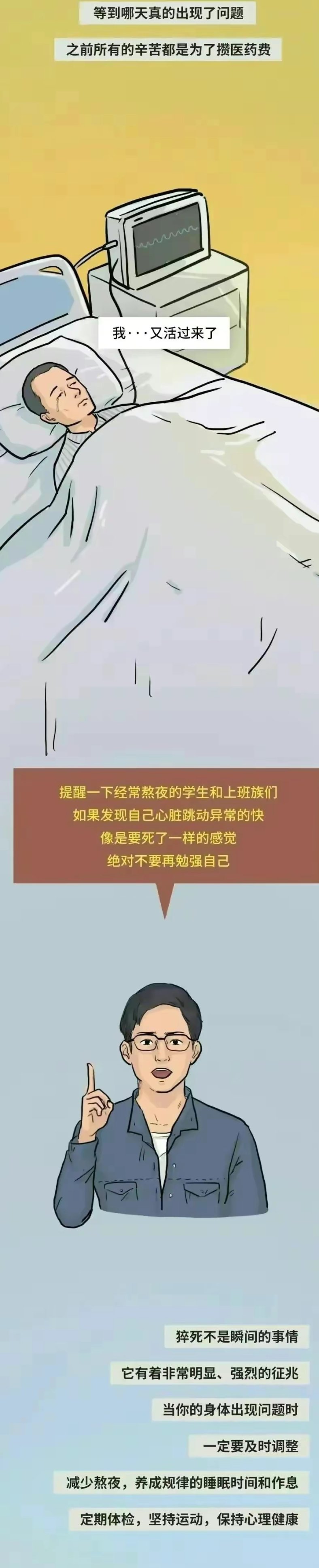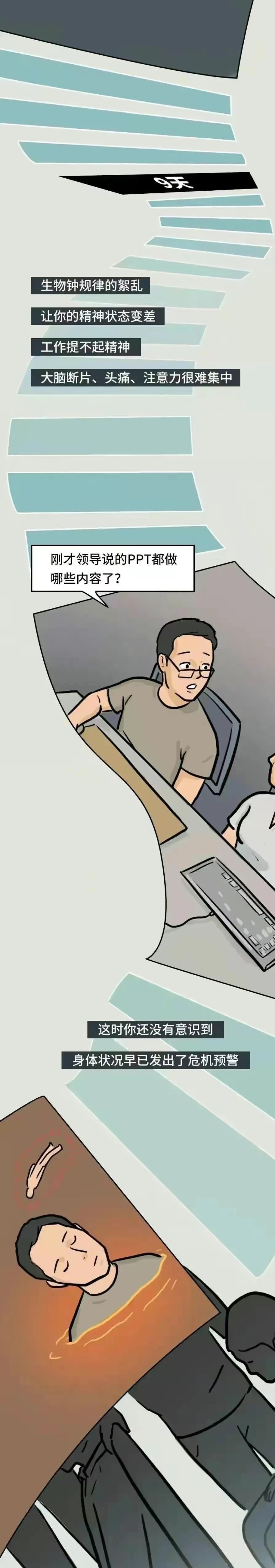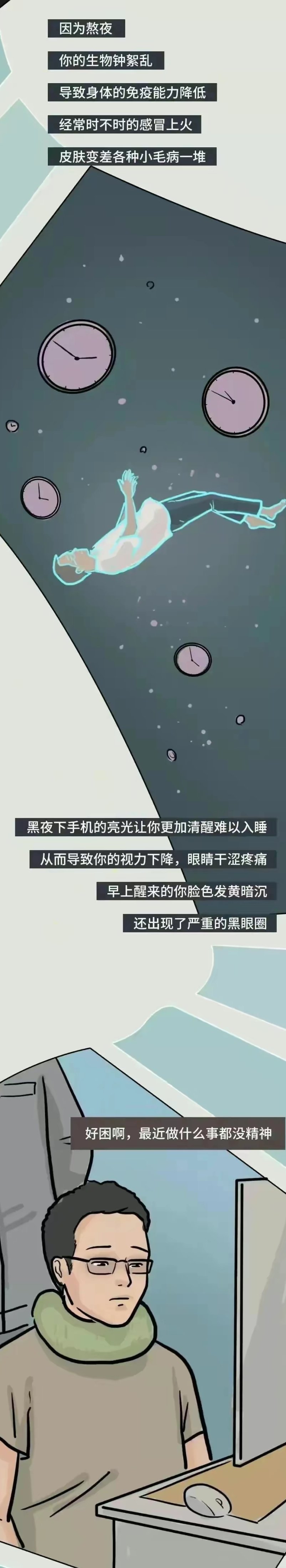 熬夜真的会早亡?熬夜伤身的道理人人都懂,却总有人在健康的边缘试探。工作忙,应酬多,晚上不想睡,早上不想起,很多人抱着侥幸的心理,认为少睡几个小时没什么大事。国际时间生物学杂志发布一篇重量级文章,文章指出,相比于早睡早起的人,晚上不睡、早晨不起或起床困难的夜猫子们早亡风险更高。越来越多人用透支睡眠的方式填补白天不够用的时间,不知不觉间欠下一大笔睡眠债。殊不知,熬夜正在从头到脚伤害你。熬夜会造成记忆力下降,熬夜者的交感神经在夜晚保持兴奋,到了白天就会出现没精神、头昏脑胀、记忆力减退、注意力不集中反应。应迟钝,等时间长了还会出现神经衰弱、失眠等问题。熬夜会让皮肤受损,皮肤在晚时之时一点进入保养状态,长时间熬夜,人的内分泌和神经系统就会失调,使皮肤干燥、弹性差、晦暗无光,出现暗疮、粉刺、黑斑等问题。