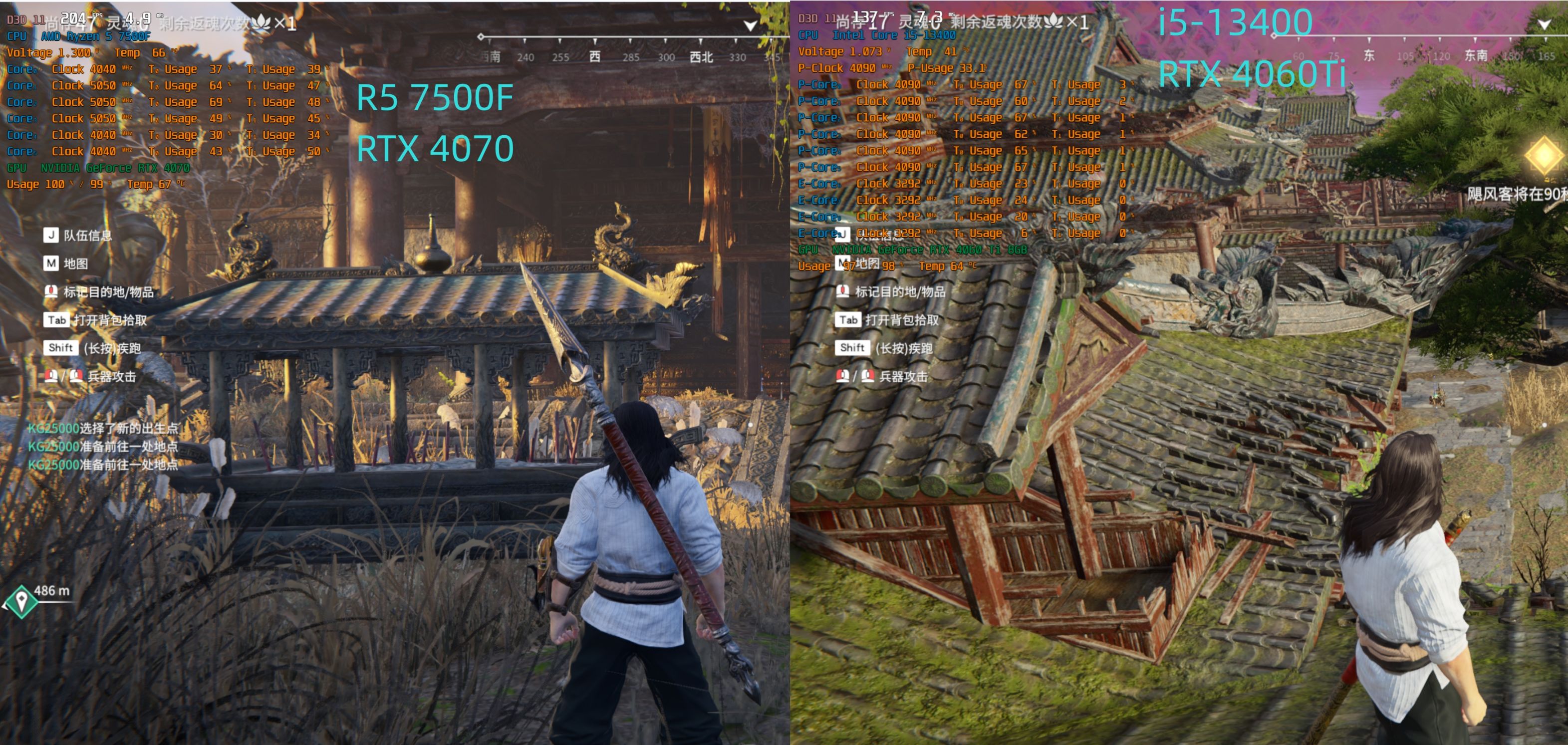 R5 7500F默认不开PBO轻松跑到5.05G频率,i5-13400最高是4.09G