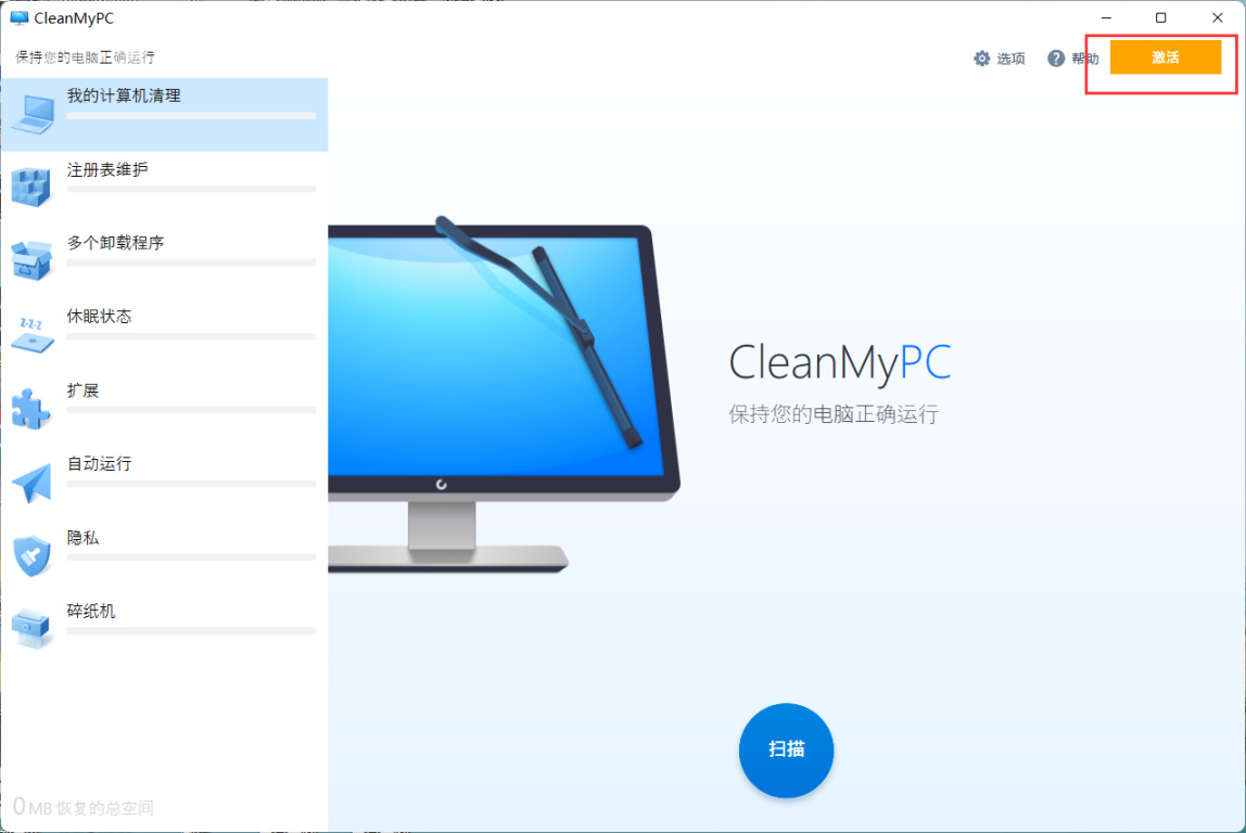 重启CleanMyPC,就可以正常使用了。