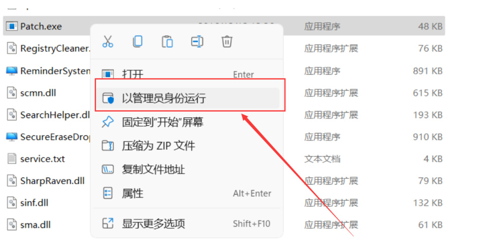 然后以管理员身份运行patch.exe