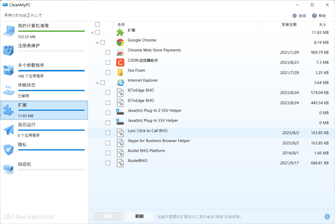 就是插件管理,扫描得非常全,比如上次推荐的谷歌浏览器插件,具体可以看上周的帖子。