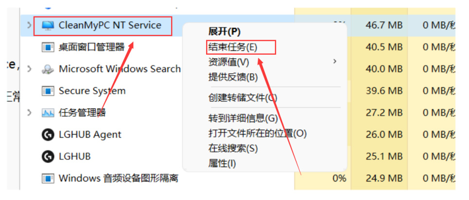 注意,显示如果点击Patch,显示文件被占用,可以打开任务管理,找到CleanMyPC Service,右键结束任务,再点击patch。