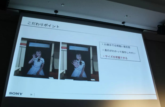 ·体验3D效果,最重要的感受就是“距离感”,凭借现有的各种显示屏,无论再怎么调校,也无法实现如同VR头显般的效果,不过索尼的“空间再现显示屏”就完全突破了观众们的想象,在显示屏的平面上靠肉眼就实现了立体距离感。