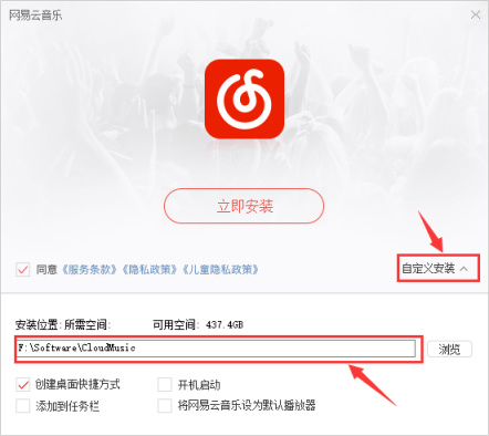 选择软件安装包→自定义安装→选择非系统盘的其他盘(根据自己电脑空间情况选择)
