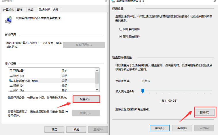 右键此电脑属性→下翻相关设置→系统保护→选择系统盘→配置→删除系统还原点(也可以删除还原点并关闭系统还原)