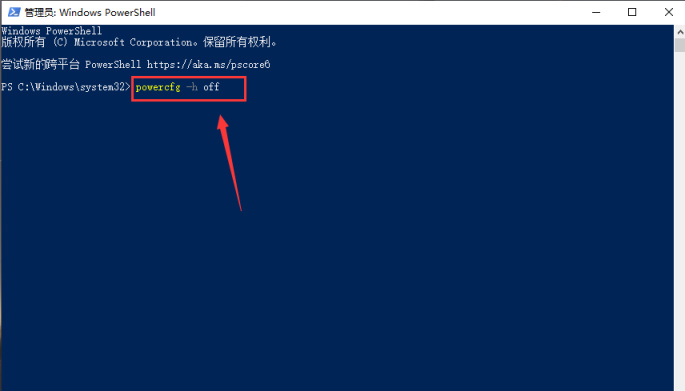 开始→下翻找到PowerShell→右键x86那个管理员身份运行→输入powercfg -h off并回车(用cmd进入命令提示符输入该命令也可以)