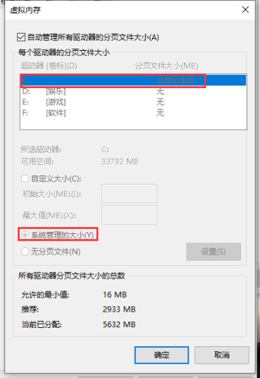 虚拟内存不易设置过大或过小,一般正常使用情况下让系统托管就可以。