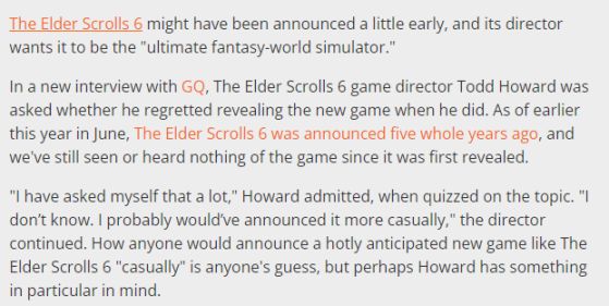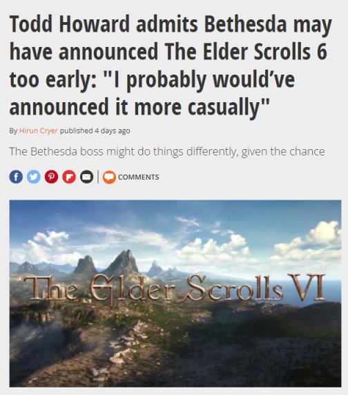 然而随着《星空》即将上市,《上古卷轴6》的可能上市时间还遥遥无期。