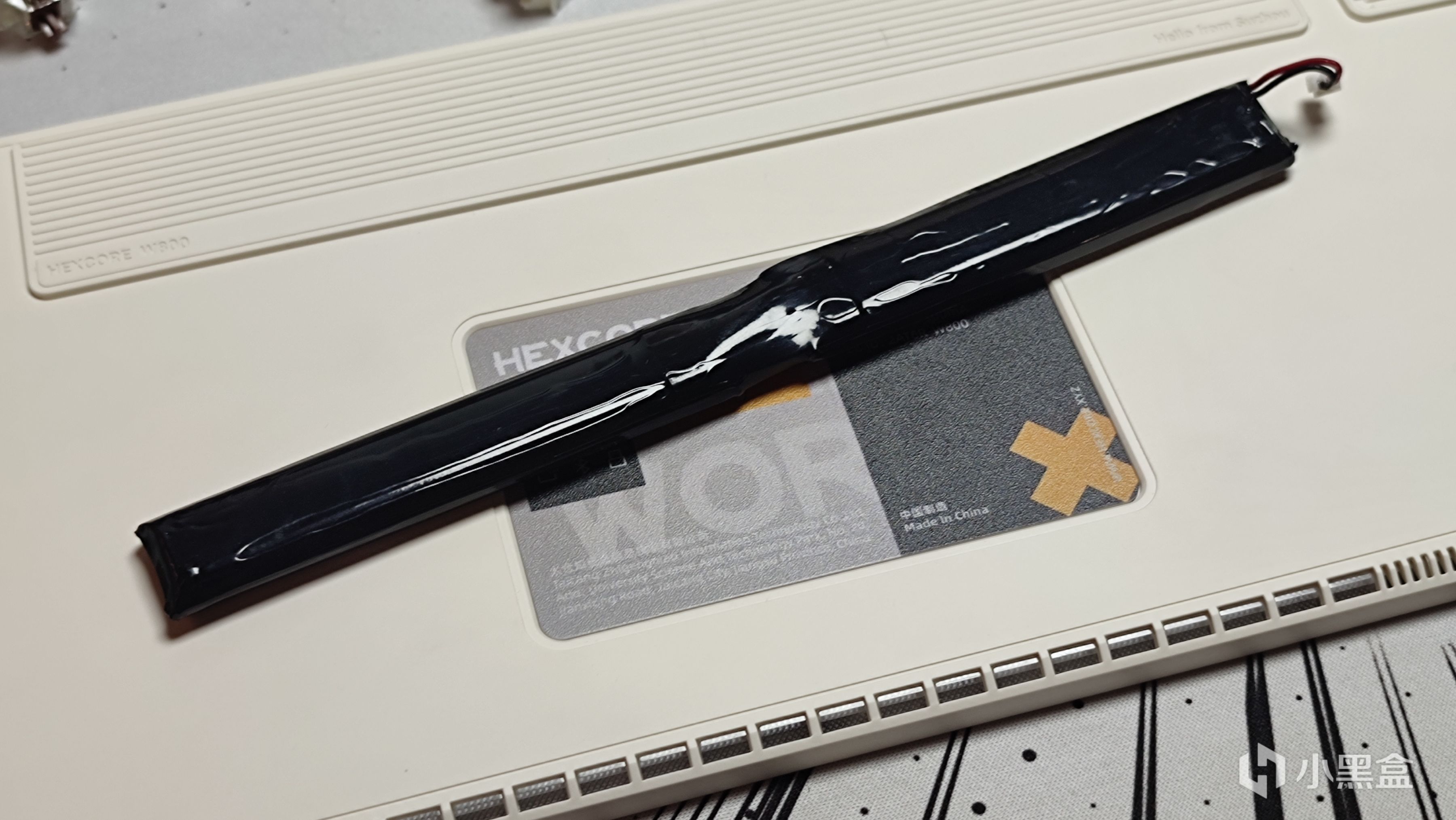 電池只有2000mah,算是一個小缺點,不過這個電池的形狀很特別,不同於之前拆解中大家見到的矩形的電池,W800的這個電池是圓柱形狀,固定位置就放在F區上方的小空間裏,這個創意還是十分新穎的,既不會影響主鍵區按鍵敲擊的手感,也不會在使用過程中大力出奇跡導致電池和PCB接觸短路,不過缺點就是容量小,續航時間不是很久。