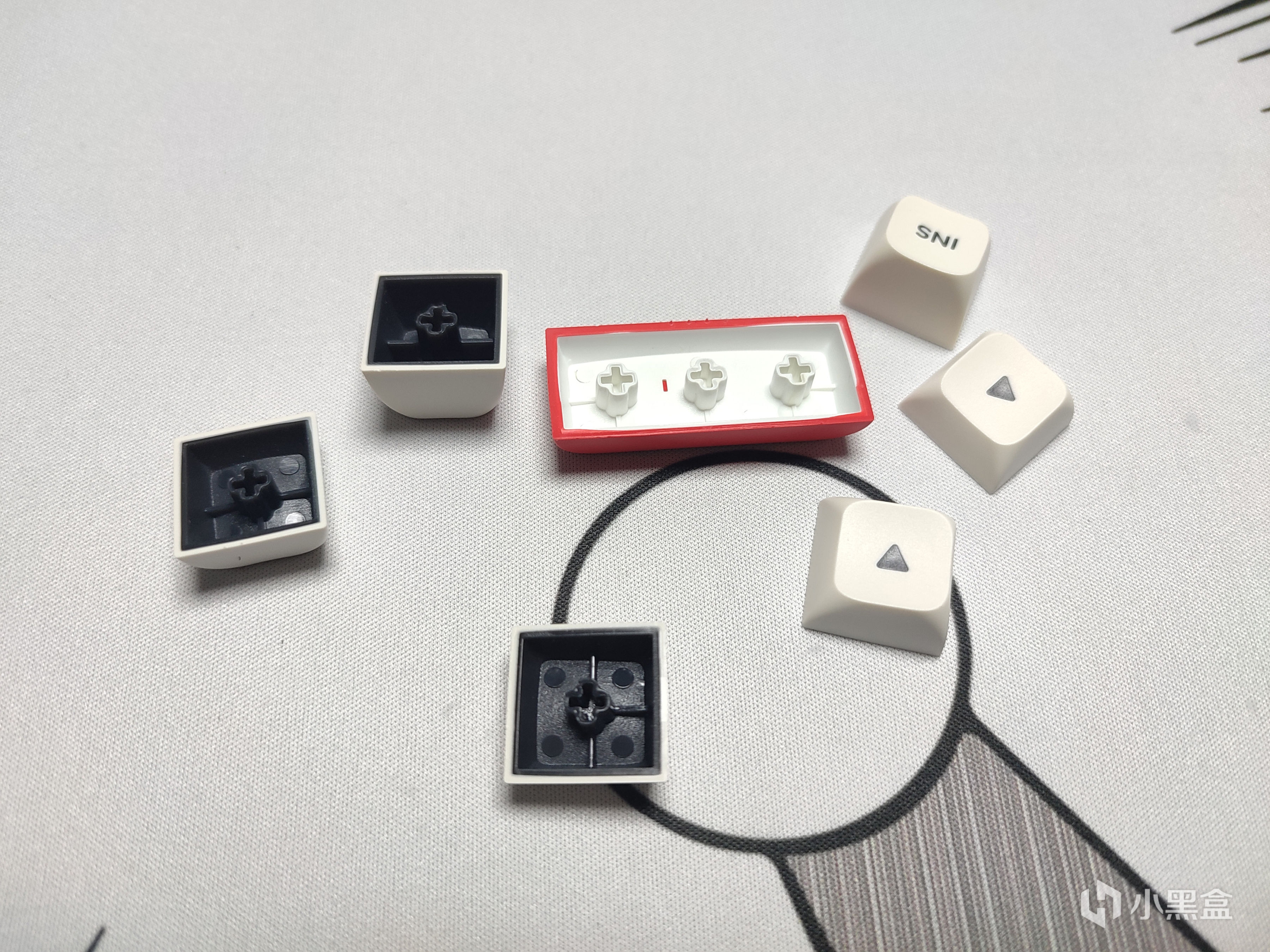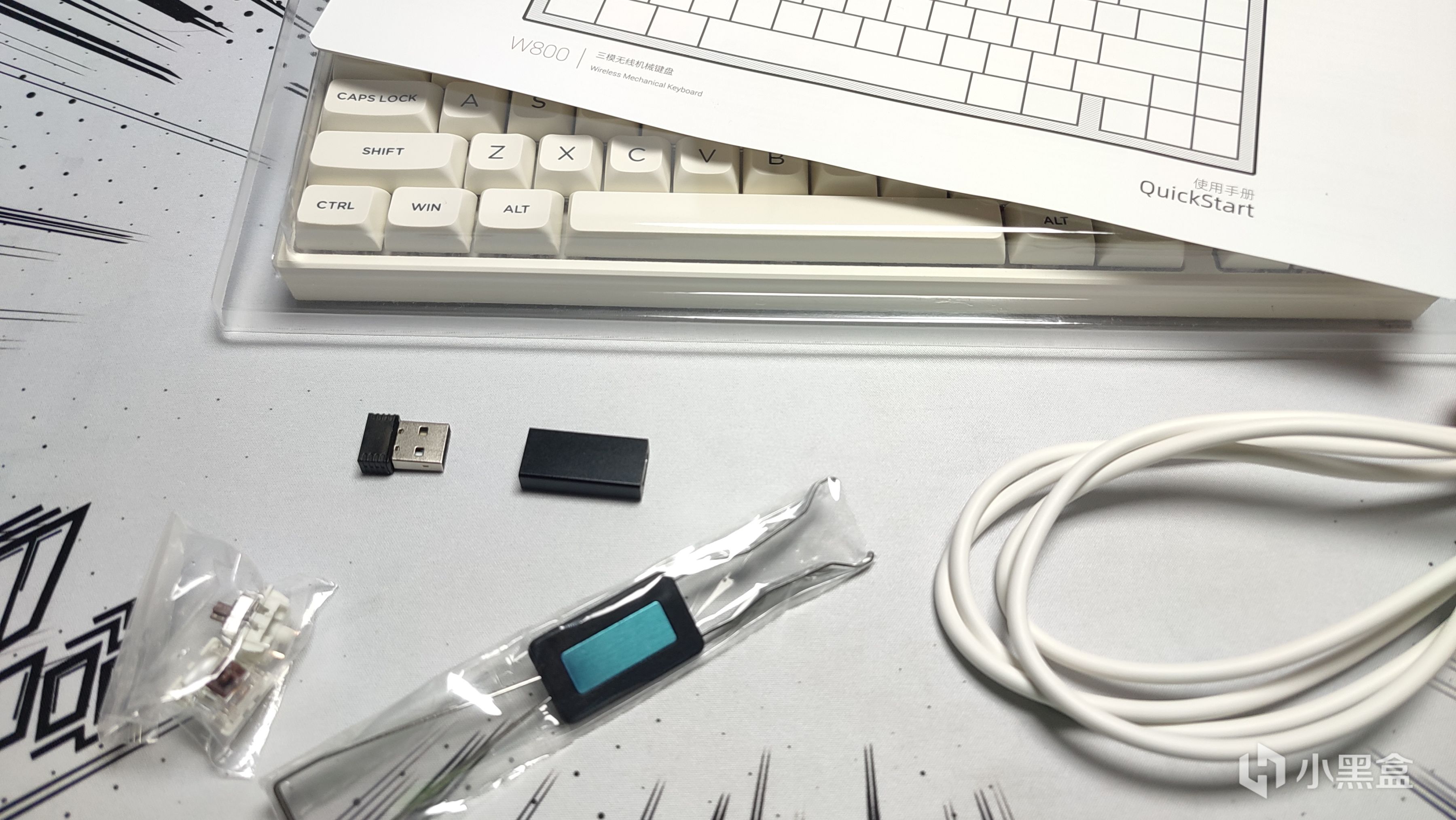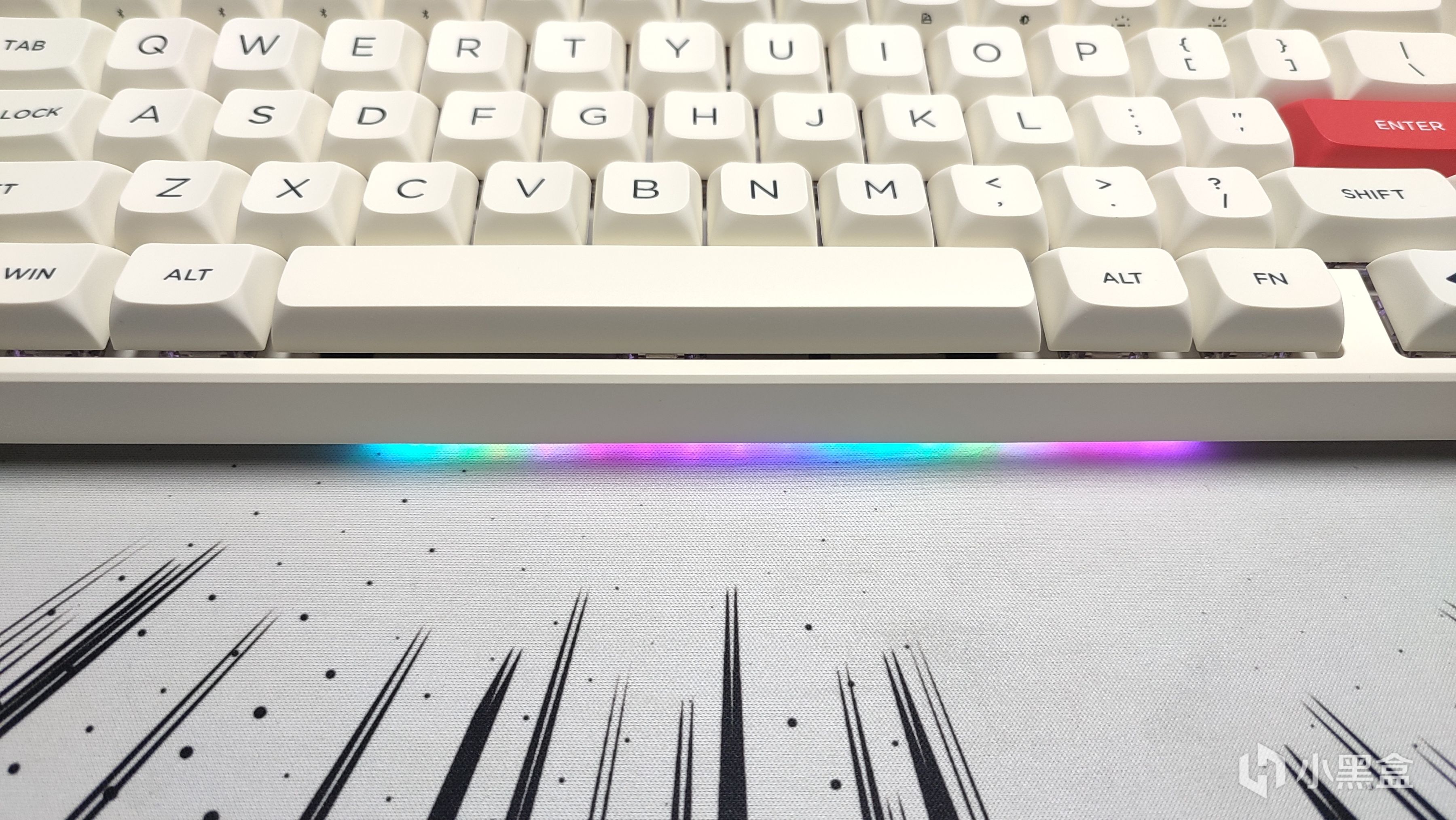 W800採用的鍵帽高度是MDA高度,這一套我上手過後摸着應該就是VGN的N75那款鍵盤的同模。整體採用PBT材質製成,工藝則是雙色注塑。手感方面摸着有點磨砂感,顏色搭配上整體比較簡約,只有紅白二色搭配,附贈的增補鍵帽也都是異色增補,也算是有點不一樣的新鮮感。