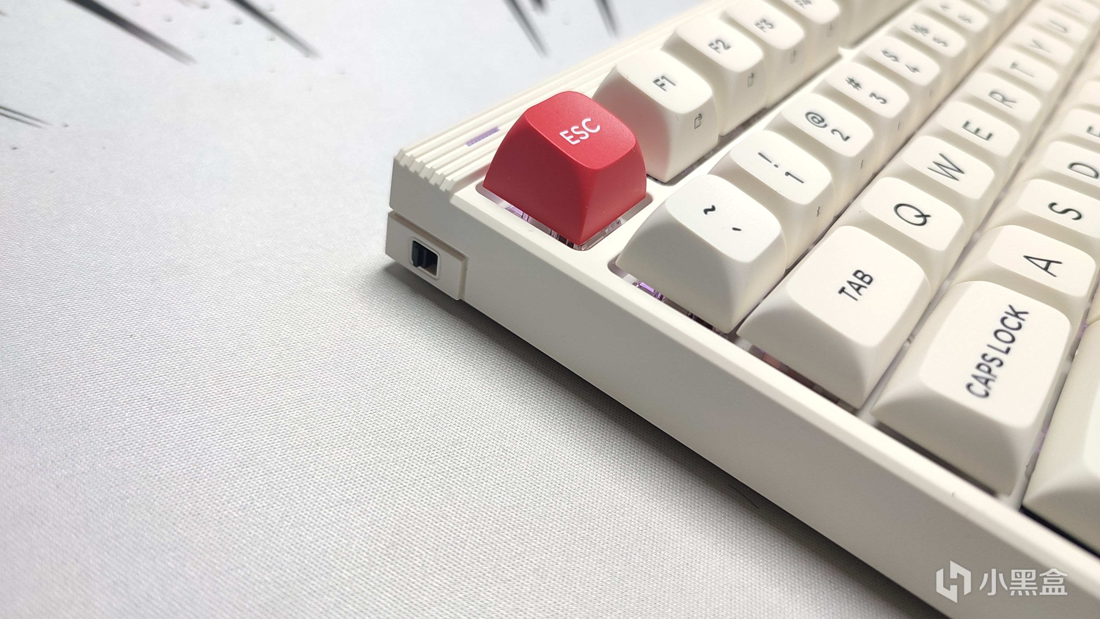 鍵盤的無線開關位置在左側面,這個位置以及角度在我個人這幾天的使用下來覺得剛好,在打字的使用角度上稍微伸一下手就能摸到。同時開關這裏還和側面做了切分,整體的美觀程度並不影響。