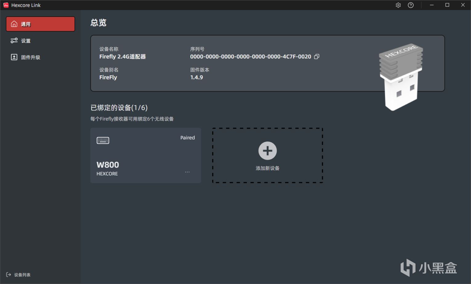 打開驅動就是選擇設備頁面,可以看到這裏目前是有兩個設備,一個是W800,這個都很熟悉;另一個則是FIREFLY,從圖標上也能認出是接收器。這時候有人疑惑了,這個接收器不也是W800用的嗎,爲什麼會有倆設備可選呢?